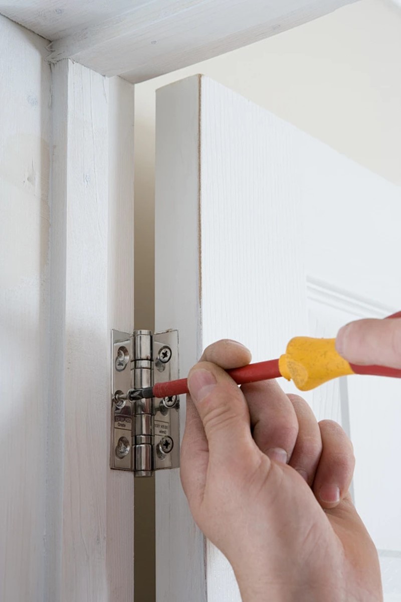 Remove the Hinge: Carefully unscrew the door hinge from the door and frame. Number each hinge pair for easy reinstallation.